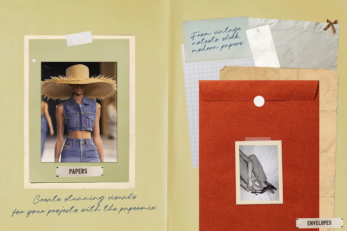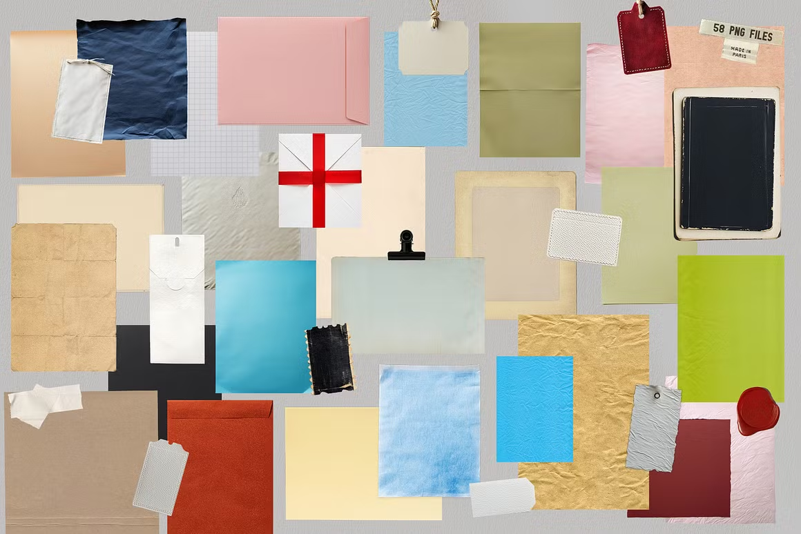 这套多功能素材包包含各种优质纸张纹理、时尚背景和必备文具配件——满足您为设计增添专业感的一切需求。对于设计师、创作者和博主而言,这套素材包是项目布局、产品展示、照片演示、品牌推广和社交媒体视觉素材的理想之选。