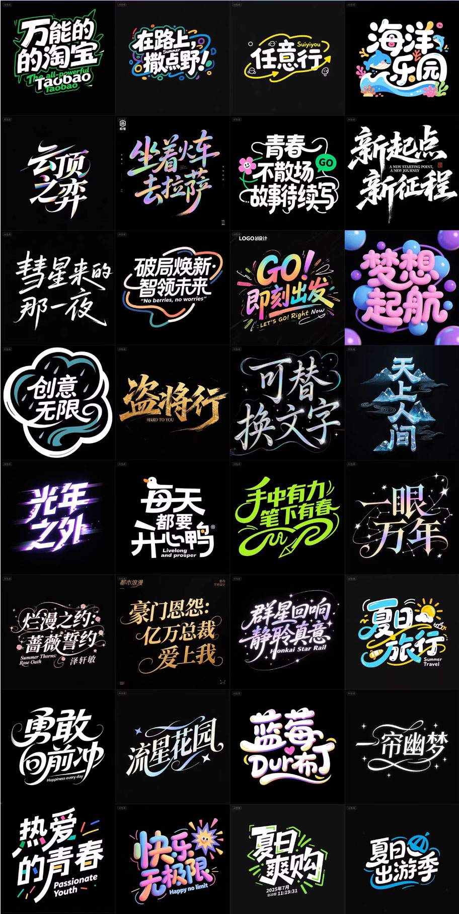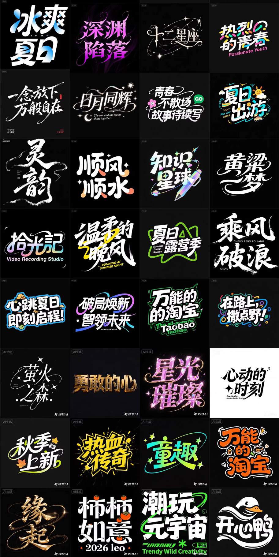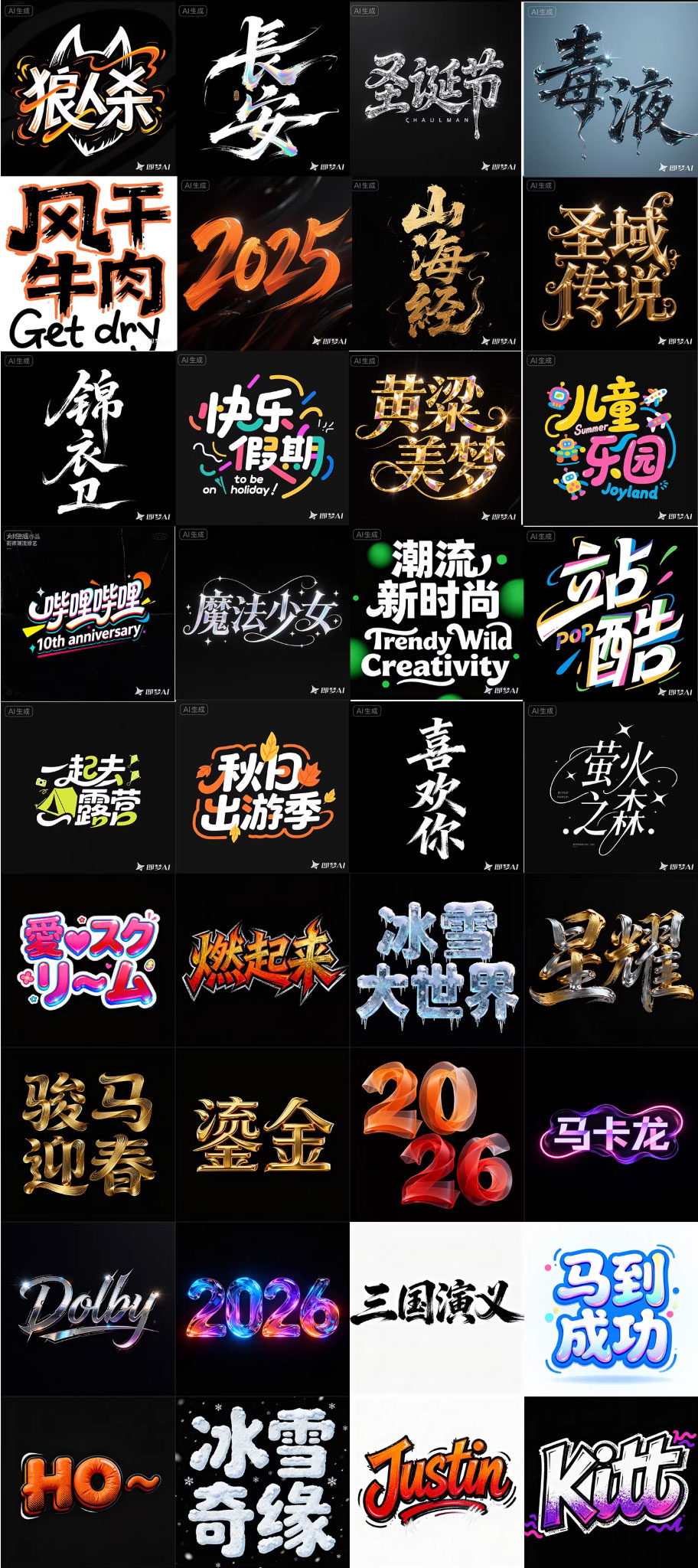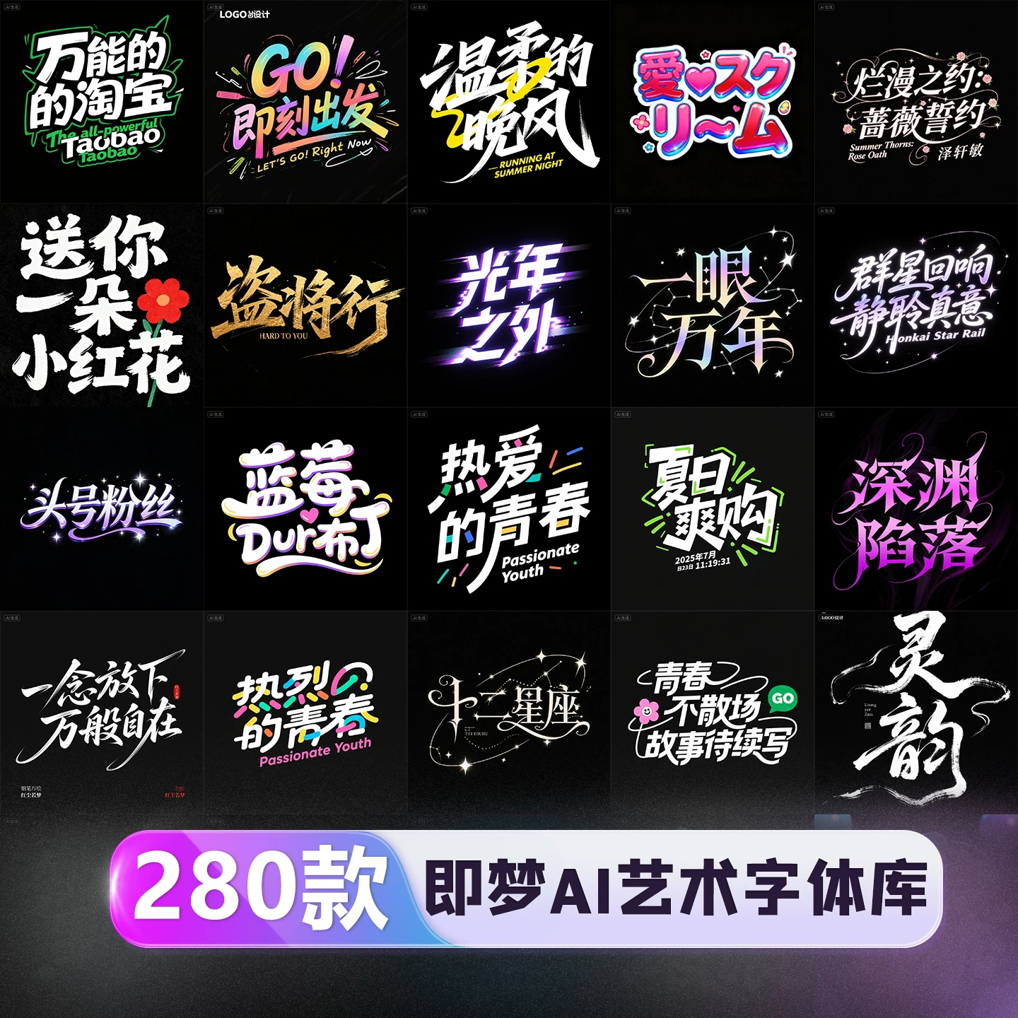 280款即梦AI艺术字体提示词库