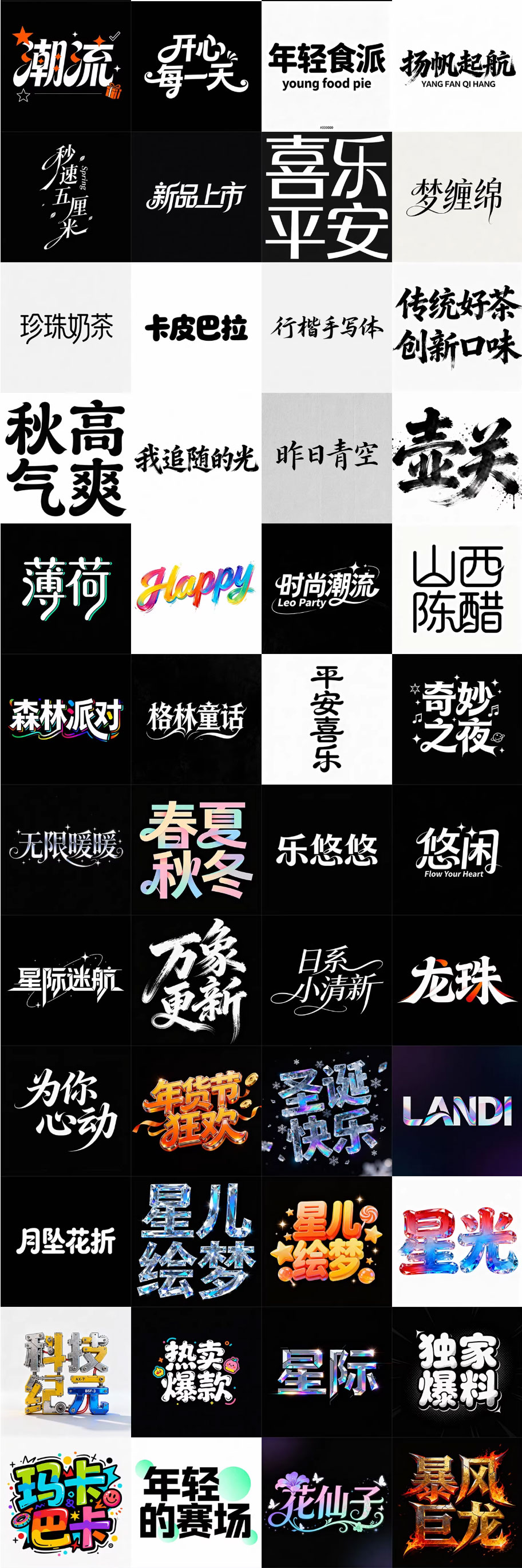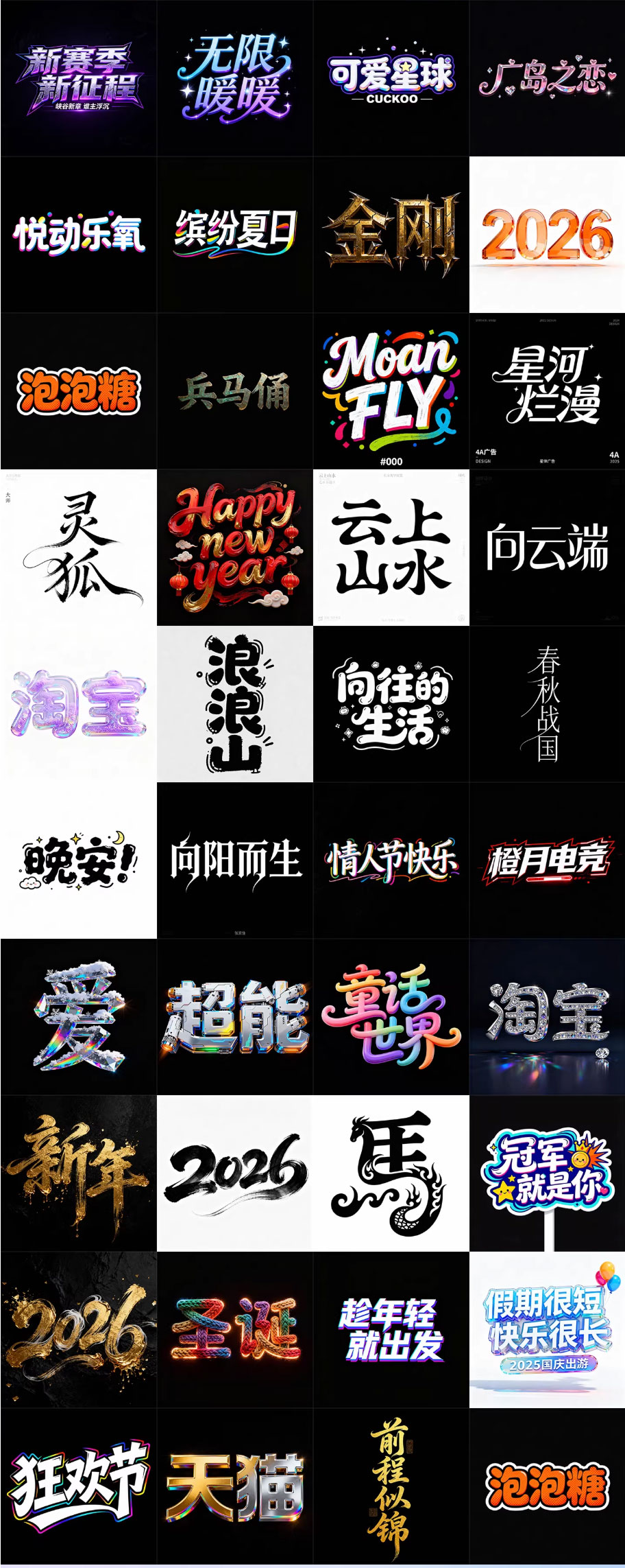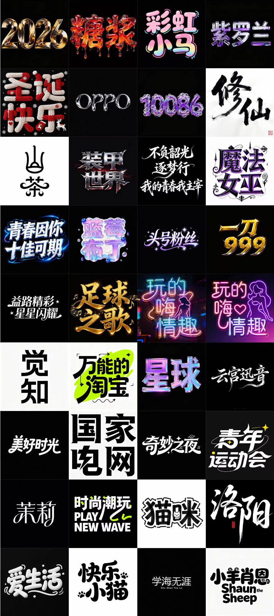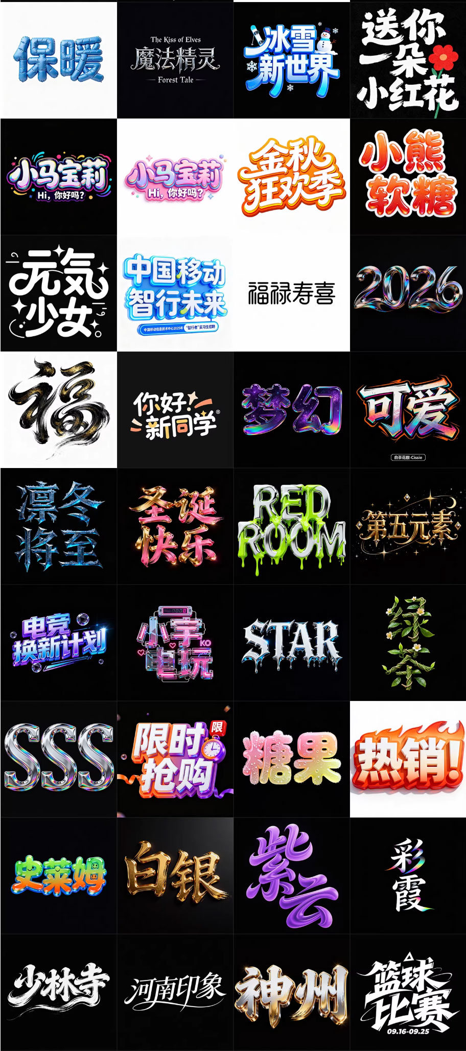 280款即梦AI艺术字体提示词库
